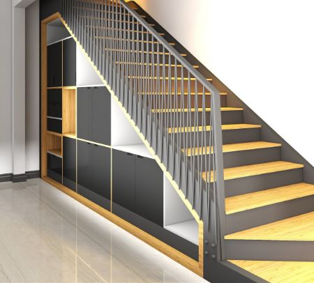 L’escalier peut faire partie intégrante de votre décoration d’intérieur, et l’espace résiduel en dessous, devenir un rangement ingénieux, ou une cave à vins !